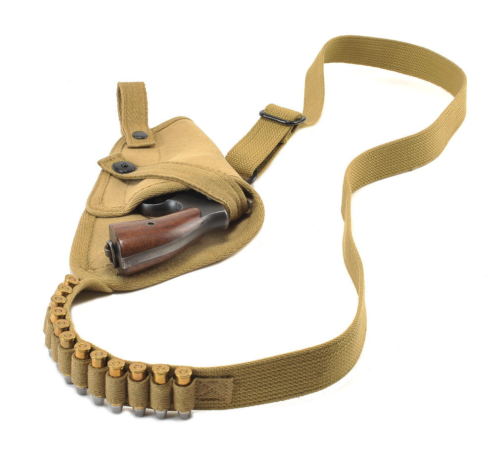 US M3 Victory Revolver Khaki Canvas Shoulder Holster with Shell loop-Left-Hand Version